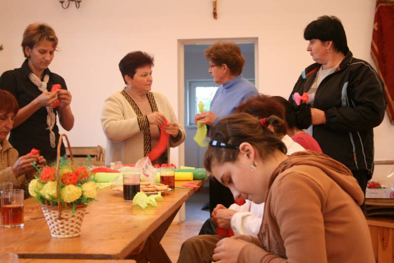 W trakcie warsztatów bibułkarskich uczestnicy nabywają podstawowych umiejętności wykonywania kwiatów z bibuły.