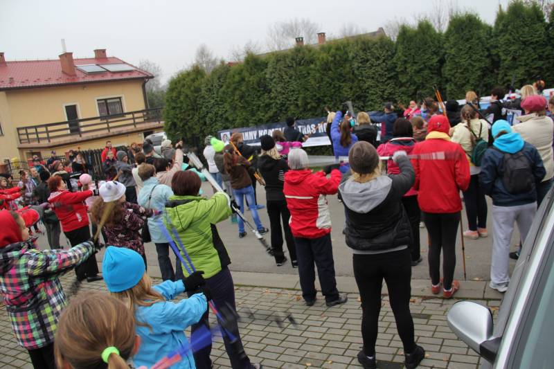Interesująca trasa rekomendowana szczególnie jako jednostka regularnego treningu nordic walking. Początkowo trasa pokrywa się z zielonym szlakiem. Po wyjściu ze Stadionu Sportowego, skręcamy w lewo i chodnikiem wzdłuż ulicy Głównej maszerujemy, aż do końca chodnika. Jeszcze chwila i za znakami szlaku skręcamy w lewo, gdzie asfaltowym dywanikiem wśród pól, wychodzimy na niewielkie wzniesienie. W dole po prawej widzimy stawy, a przed nami wyrastają zalesione szczyty Beskidu Żywieckiego. Dochodzimy do skrzyżowania i ulicą Włosiańską pomiędzy zabudowaniami maszerujemy blisko 2 kilometry. Ulicą Akacjową, a następnie Spacerową dochodzimy do Lasu Karolińskiego - niewielkiego kompleksu leśnego, gdzie usytuowana została tablica z ćwiczeniami. Po ich wykonaniu za moment skręcamy w lewo i ulicą Karolina maszerujemy w kierunku centrum Osieka. Początkowy 500 metrowy fragment bez chodnika, wymaga zachowania szczególnej ostrożności. Skręcamy w ulicę Sobótkową i za znakami szlaku, przecinamy ulicę Główną. Ulicą Stawową dochodzimy do ulicy Starowiejskiej, gdzie łączymy się z czarnym szlakiem. Jeszcze niespełna 2 kilometry marszu i przechodząc przez Centrum Osieka dochodzimy do Stadionu Sportowego, zamykając pętlę czerwonego szlaku.